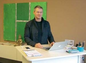 Juli 2012, Michael Huemer arbeitet im Büro im Stehen