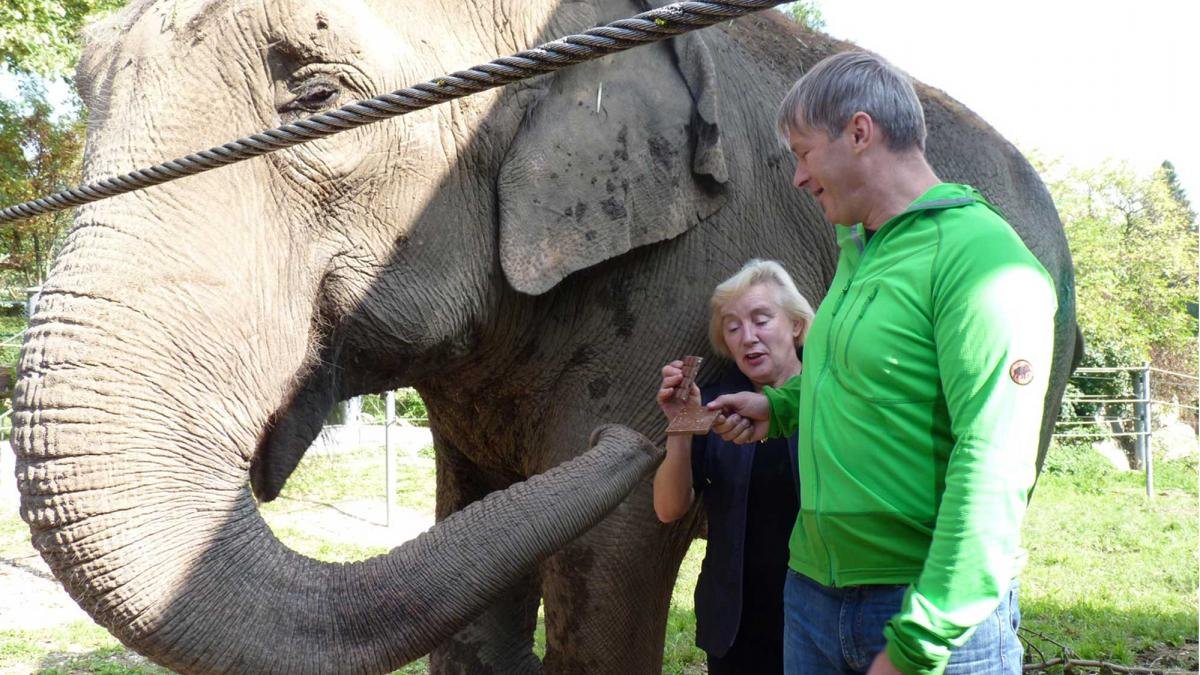 Tierpark Walding – „Tierpate“ Michael Huemer mit Elefantendame Bimbi